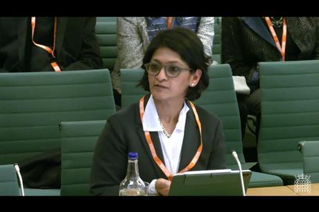 Monisha Shah, the government’s preferred candidate for the post, faces questioning from MPs.